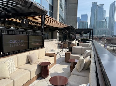 The Rogers Terrace includes a private outdoor patio overlooking the field, offering a more open and social viewing experience. (Jermaine Wilson/CTV News Toronto).