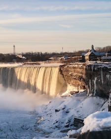 FROZEN NIAGARA FALLS CONTEST While it may look like the Falls are frozen, technically the water never stops flowing. (Niagara Parks/Instagram: Maplelensworks)