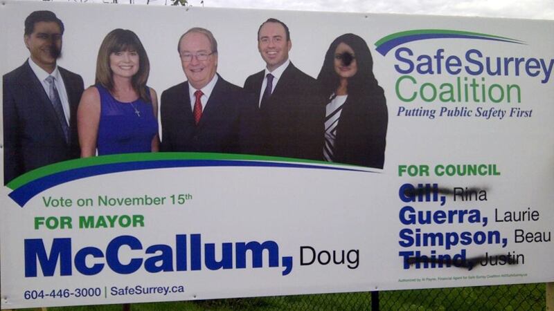 Signs featuring politicians of South Asian descent vandalized in Surrey