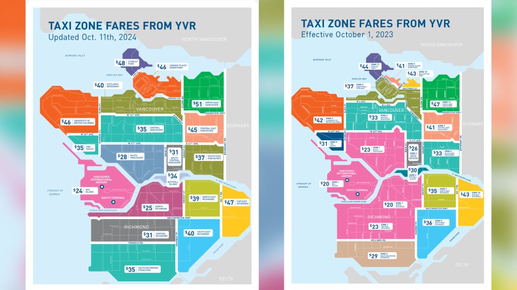 Taxi passengers leaving YVR paying up to $9 more under new zone fares