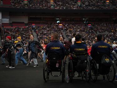 Invictus Games Colombia Members of Team Colombia watch a performance during the Invictus Games opening ceremony in Vancouver on Saturday, February 8, 2025. THE CANADIAN PRESS/Ethan Cairns