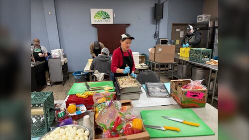 Agape Table A group of volunteers prepare food at Agape Table in Winnipeg, Man., on March 30, 2026. (Ken Gabel/CTV News)
