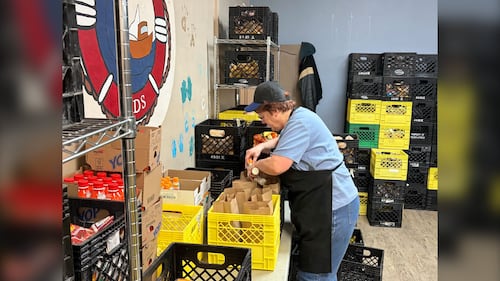 Agape Table A woman fills up bags of food at Agape Table on March 30, 2026. The Winnipeg non-profit helps to feed more than 700 people each day. (Ken Gabel/CTV News)