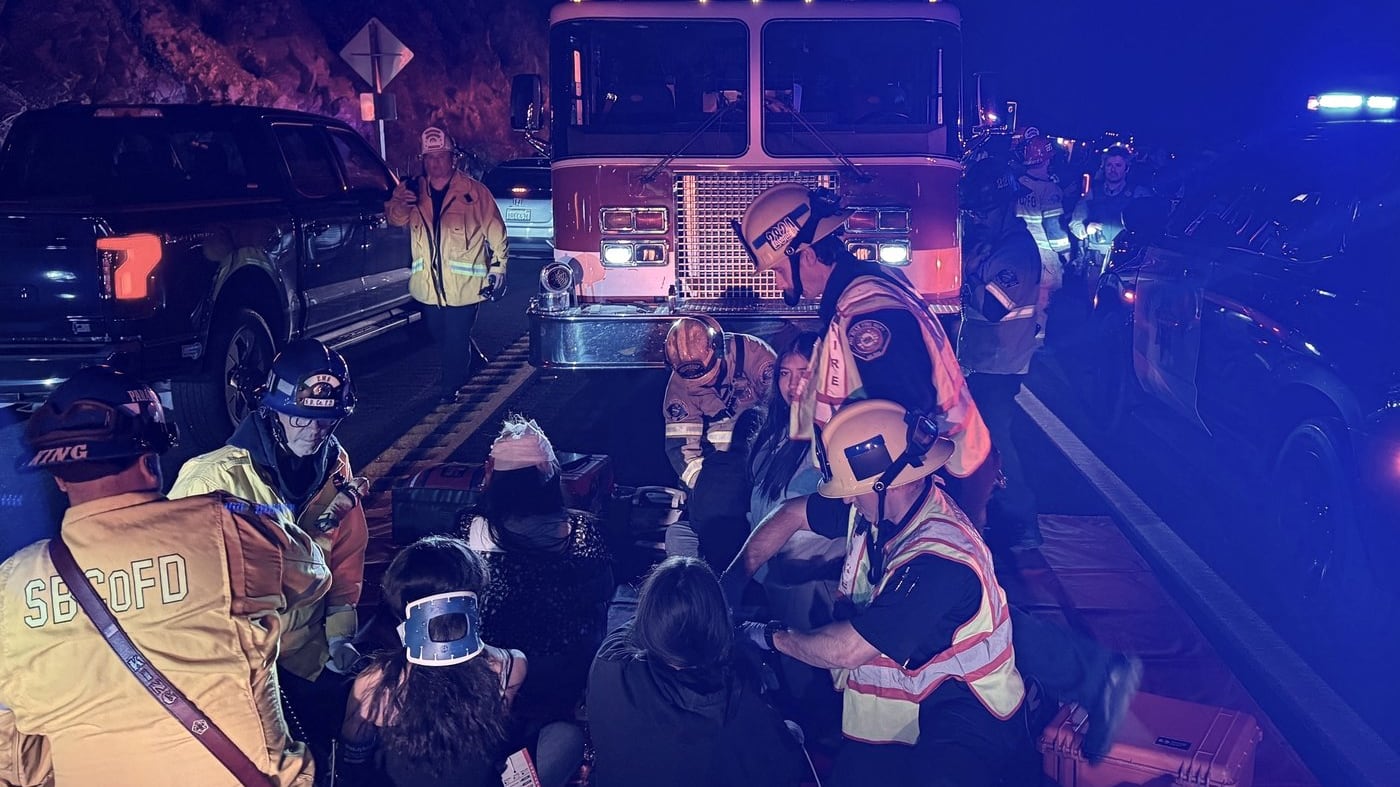 20 taken to hospitals after bus returning from church camp overturns on winding California road