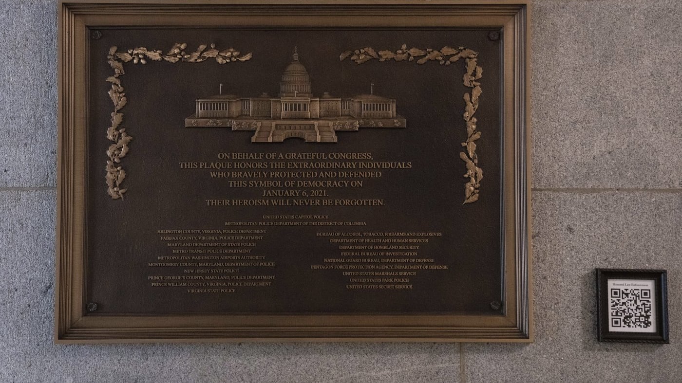 Jan. 6 plaque honouring police officers is installed at the Capitol after a 3-year delay