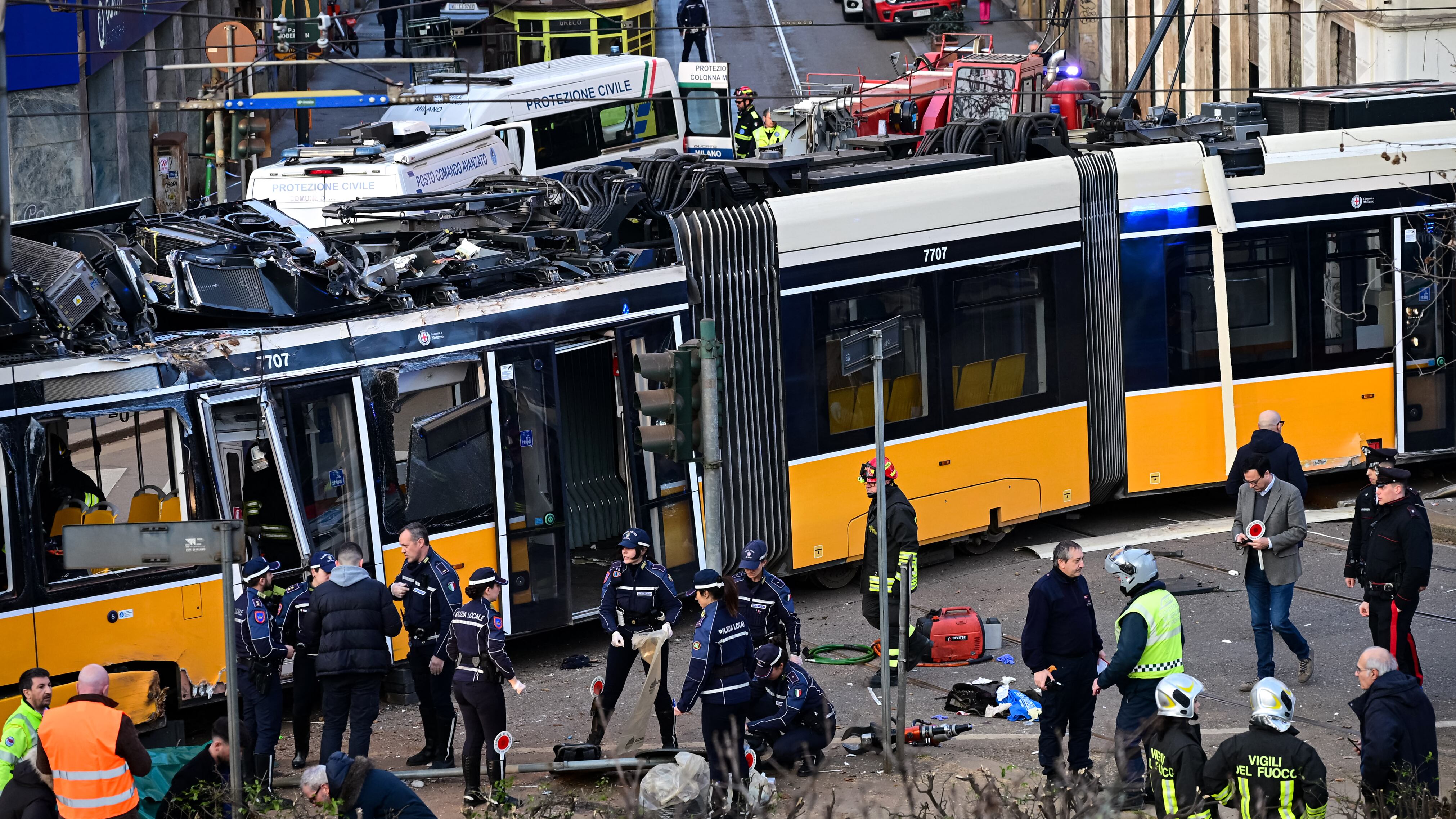 Milan tram derails and slams into a building, killing two people