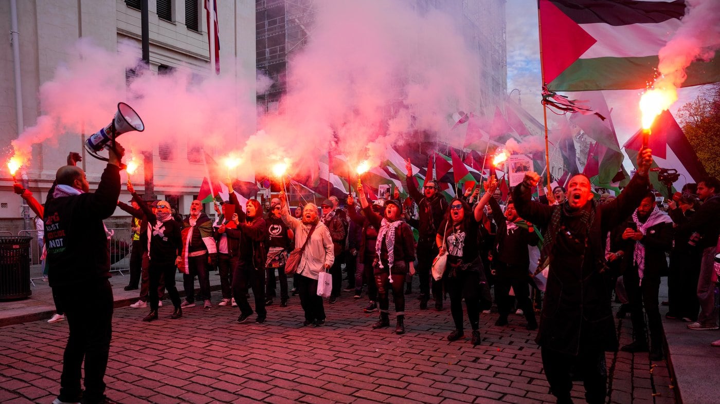 Pro-Palestinian protesters march to stadium ahead of World Cup qualifier between Norway and Israel
