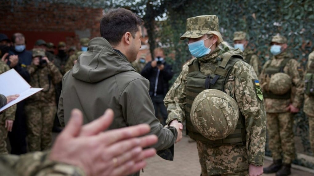 Ukraine's Zelensky on frontline as Merkel urges Putin to pull back troops